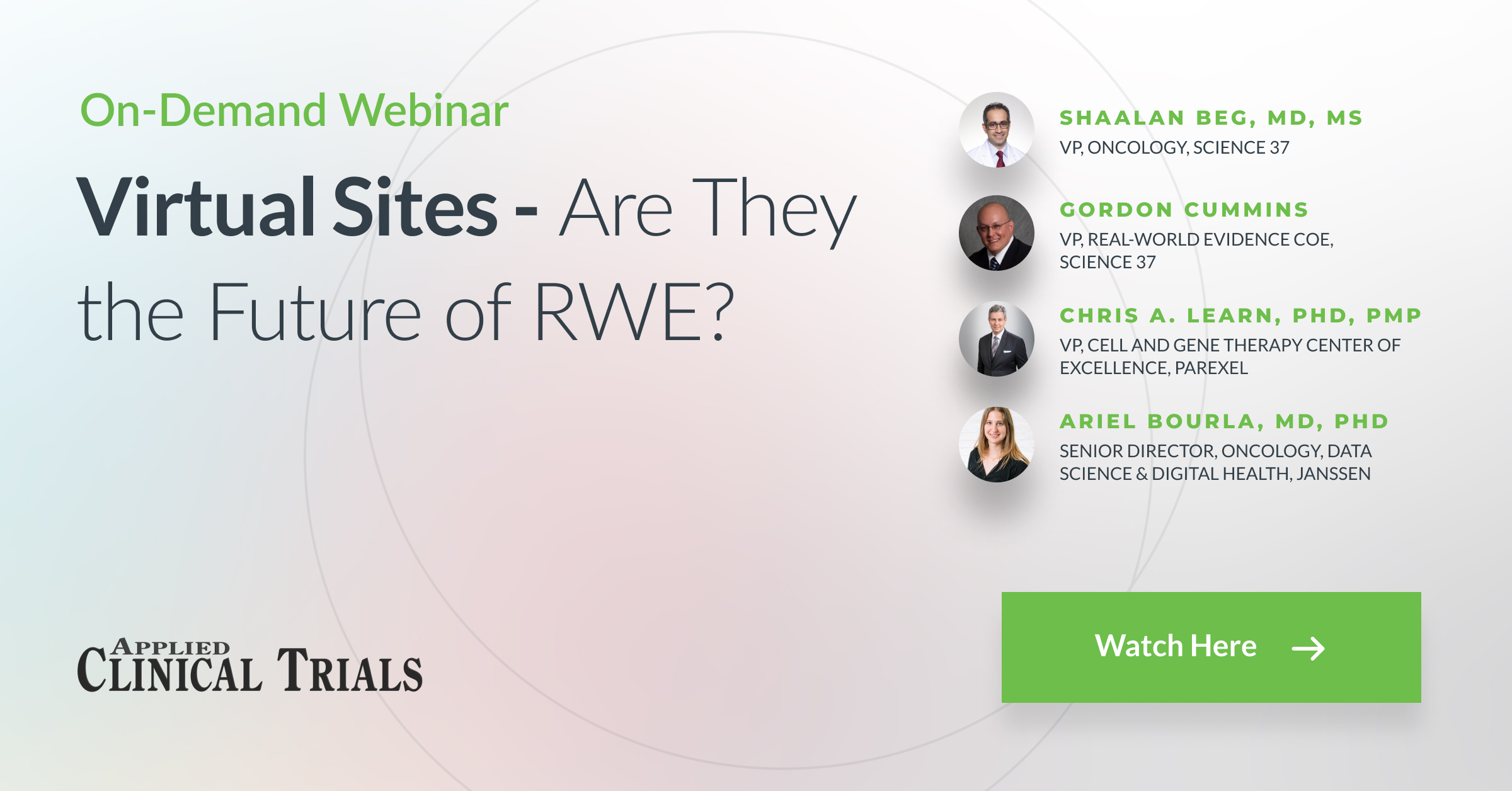 In this video-on-demand, Dr. Shaalan Beg, VP of Oncology at Science 37, and Gordon Cummins, VP of RWE COE at Science 37, host a conversation with Applied Clinical Trials and a group of leaders to address challenges faced by the industry. The panel discusses how virtual sites can be implemented to improve real-world data access and long-term follow-up, as well as elaborates on the value virtual sites deliver to patients, sponsors, and CROs alike. Learn how virtual site elements are incorporated today, and how the landscape will change in the years to come.