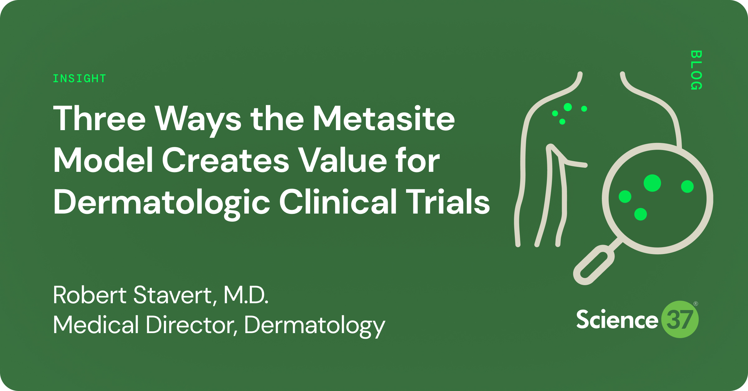 The shift in patient preference toward remote healthcare delivery and clinical research participation is fundamentally changing how clinical trials are conducted. For patients with dermatologic conditions, a virtual clinical trial model such as the Science 37 Metasite expands access to clinical research, helps improve retention and compliance, and ultimately helps to bring much-needed therapies to patients more quickly.